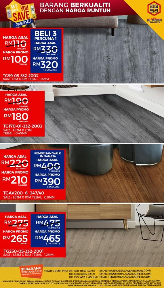 CLEAR STOCK SALES. Kalau beli ikut meter lebihan tikar tu tuan kedai susah nak jual semula. Ada promosi dan pos percuma ke seluruh semenanjung Malaysia.